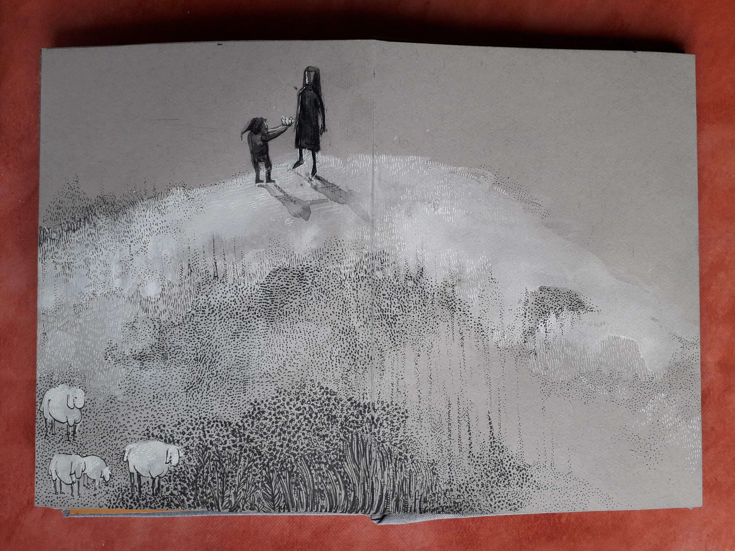 “А Dwarf’s Secret” is a story by Desanka Maksimović that inspired me to create this book. The story is about a lonely dwarf who spent his entire life guarding the secrets of the forest and the golden flower of happiness. On the day of his death, he decided to share the secret with a young shepherdess.
