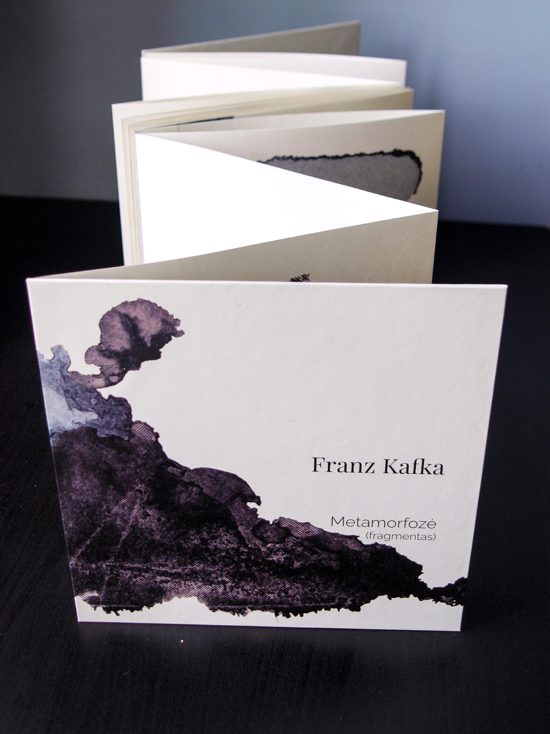 „One morning, as Gregor Samsa was waking up from anxious dreams, he discovered that in bed he had been changed into a monstrous verminous bug“. The book I created is a fragment from Franz Kafka‘s „Metamorphosis“. The scene I chose is Gregor Samsa getting out of his bed. With the help of abstract illustrations and stains I tried to capture the protagonist‘s feelings, his mood, embody the beetlesque existence, which can be felt by all of us at one point in our lives. Did Gregor actually turn into a beetle or is his mind playing tricks on him and it‘s just a hallucination? Rorschach test uses stains to test subjects perception and analyze it‘s emotional functioning and personality characteristics. This is precisely the reason why my book is also filled with stains. I want people looking at the book to question their own sanity and emotional wellbeing.