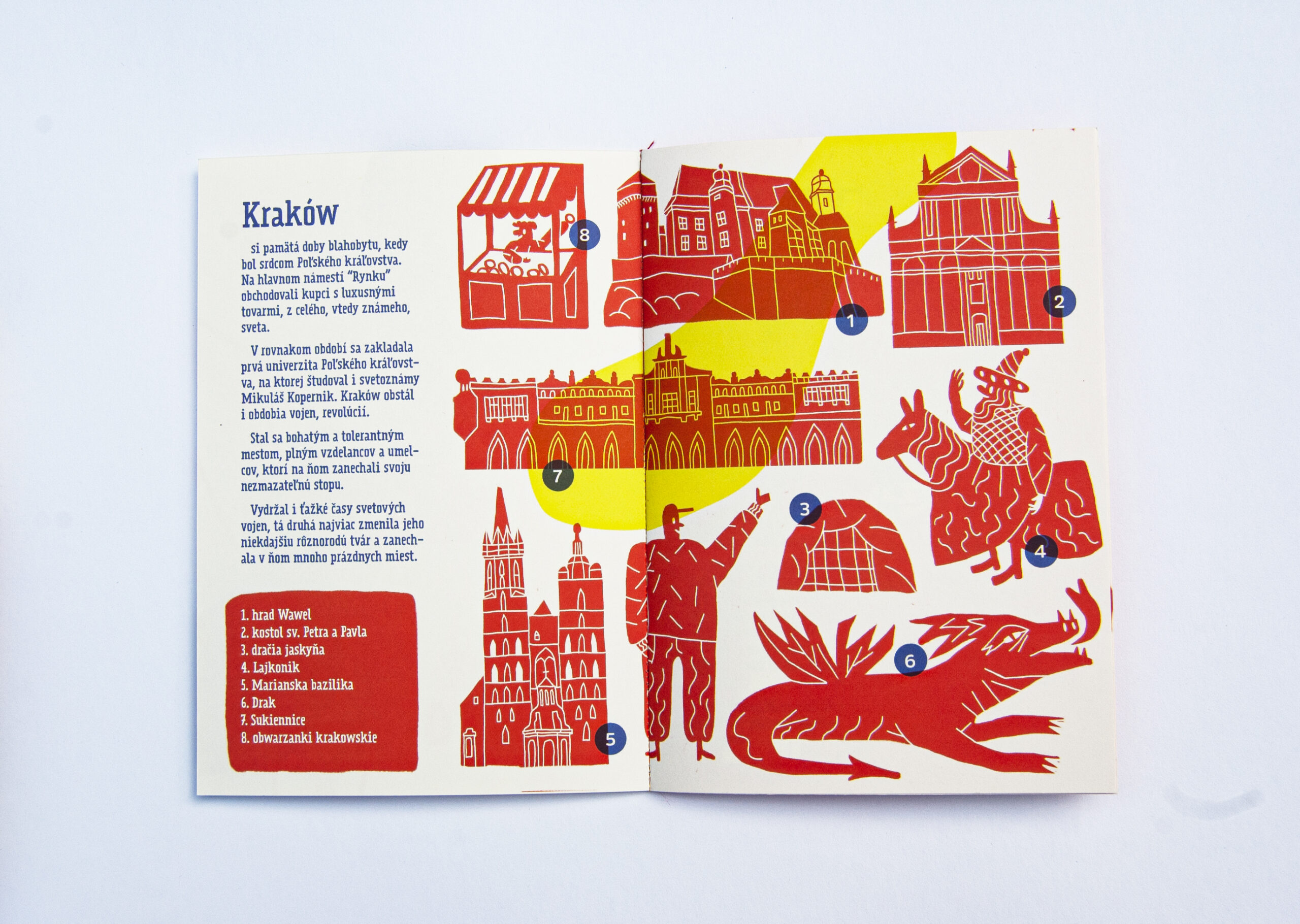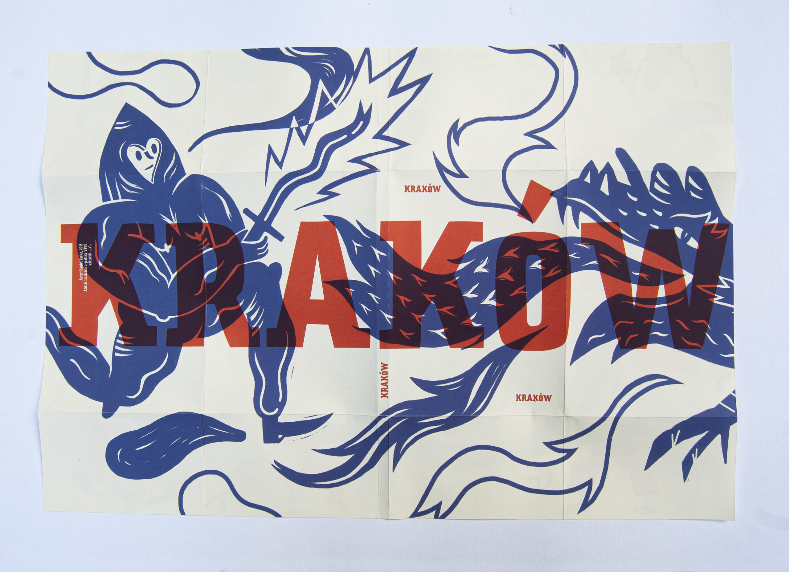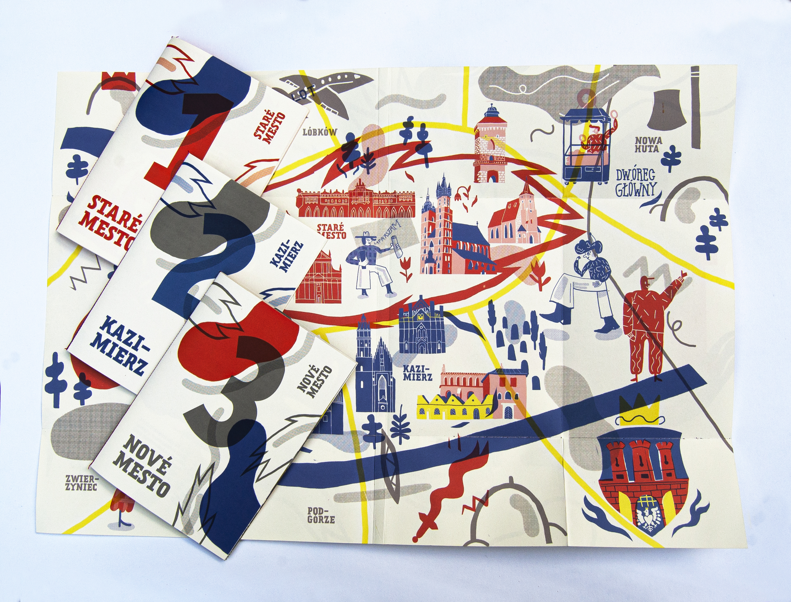 Work “Kraków” is little guitebook for town of Kraków. Poland. City of polish kings. It contains 3 little books each dedicated to one of three area of town (old town, kazimierz – old jewish quarter, and new town) so you can take just one if you want to explore just one area. Each area of town has also specific colour in the book. Guitebook contains postcards, so you can send greetings from Kraków to home, also map of town and poster which with map on back side form the cover. Play with book play with the town!